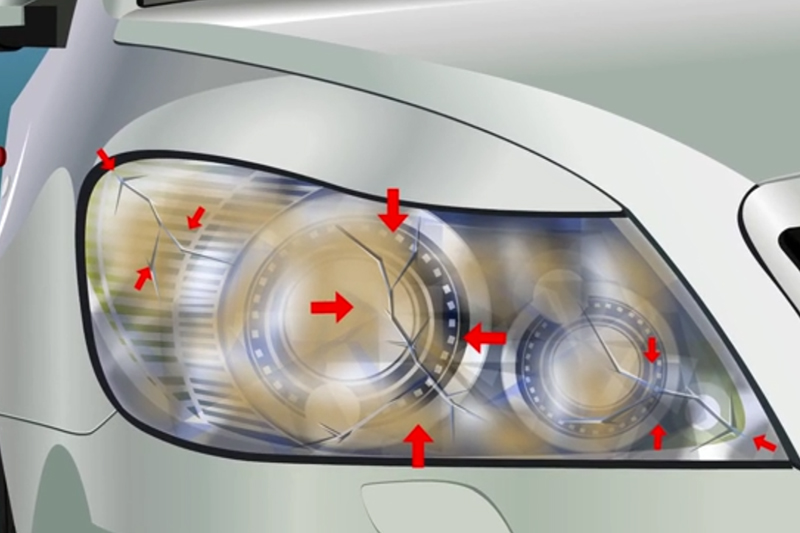 - Физичко оштетување (гребење со четки во перални). Често пати четките во пералните ги користат за чистење на фелните од автомобилот, а потоа со истите четки ги чистат и фаровите. Таквите четки се полни со прашина и песок од фелните и претставуваат ситен абразив.